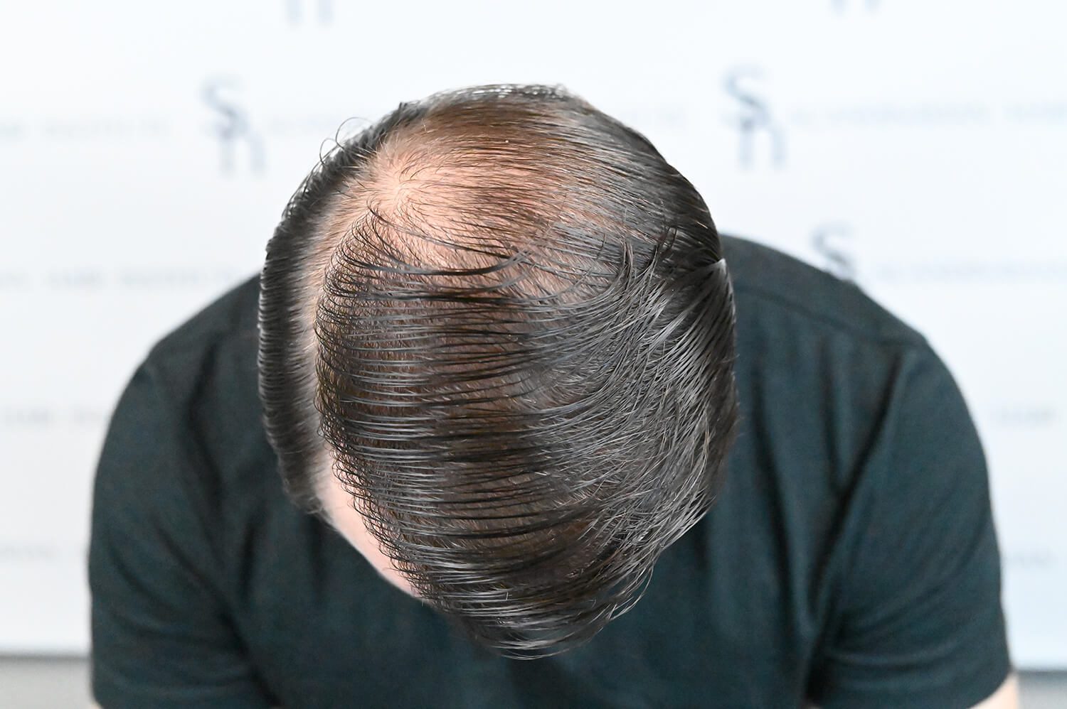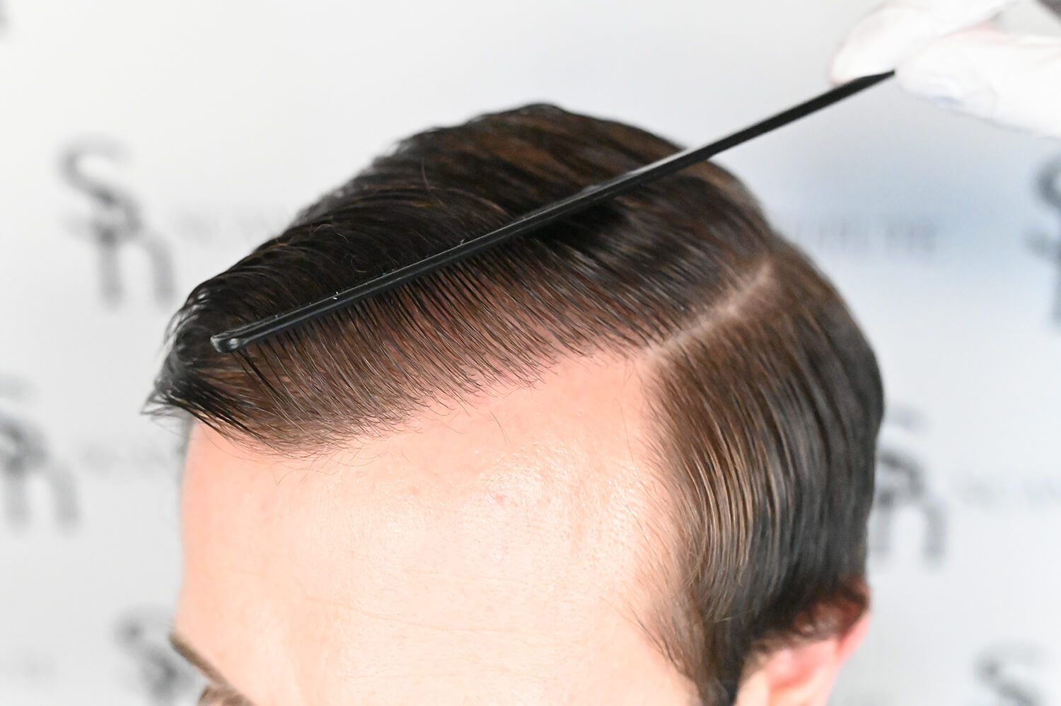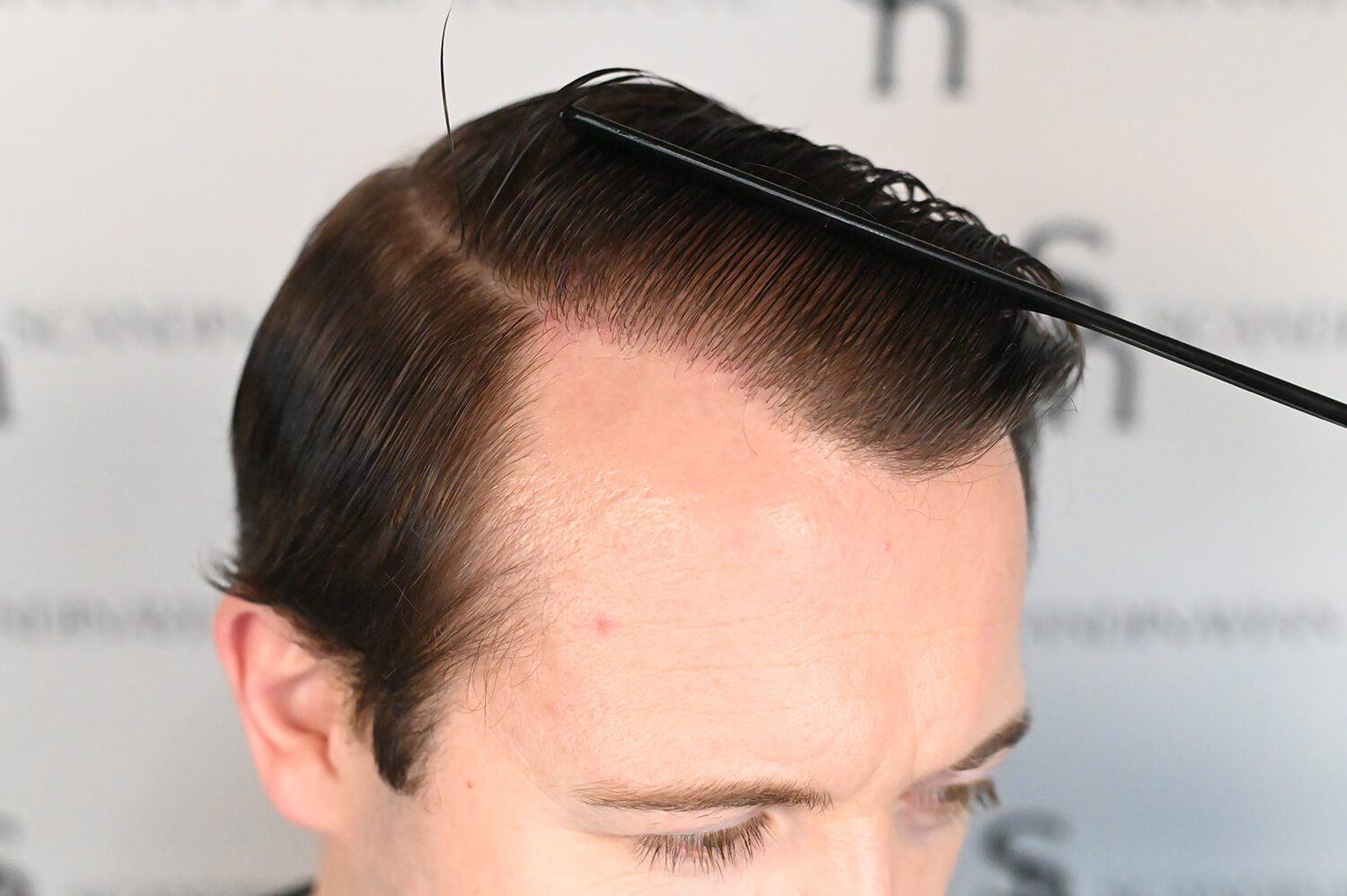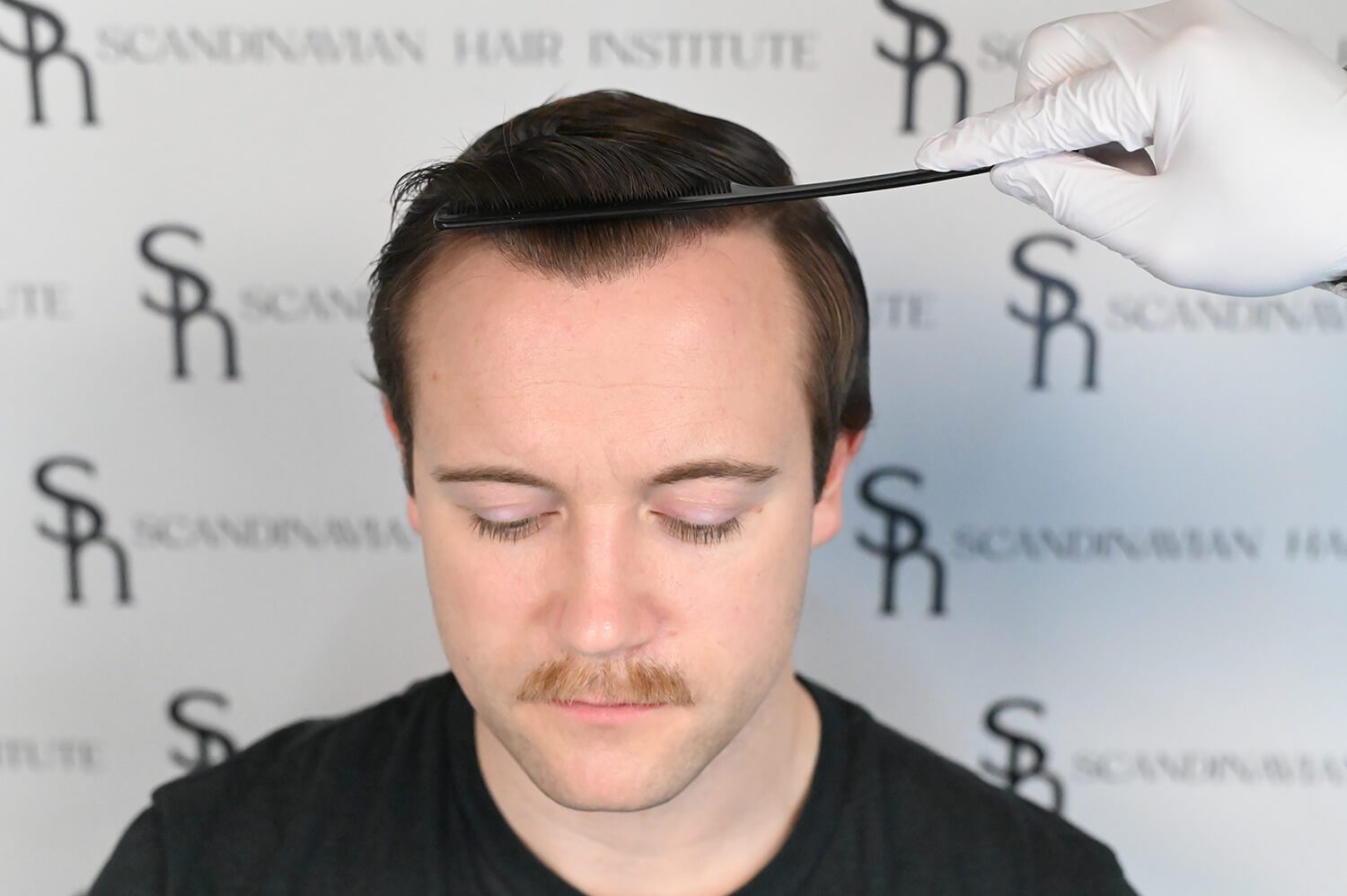 Our patient came to us to fill in his front, temples and crown. We used 2800 grafts on his first session. The second session is planned til next summer where we will do a touch up on the crown to seal the deal. It is important to educate patients and show what density to expect spreading this number of grafts over both the front and the crown and that you should expect doing touch ups to get complete denisty!