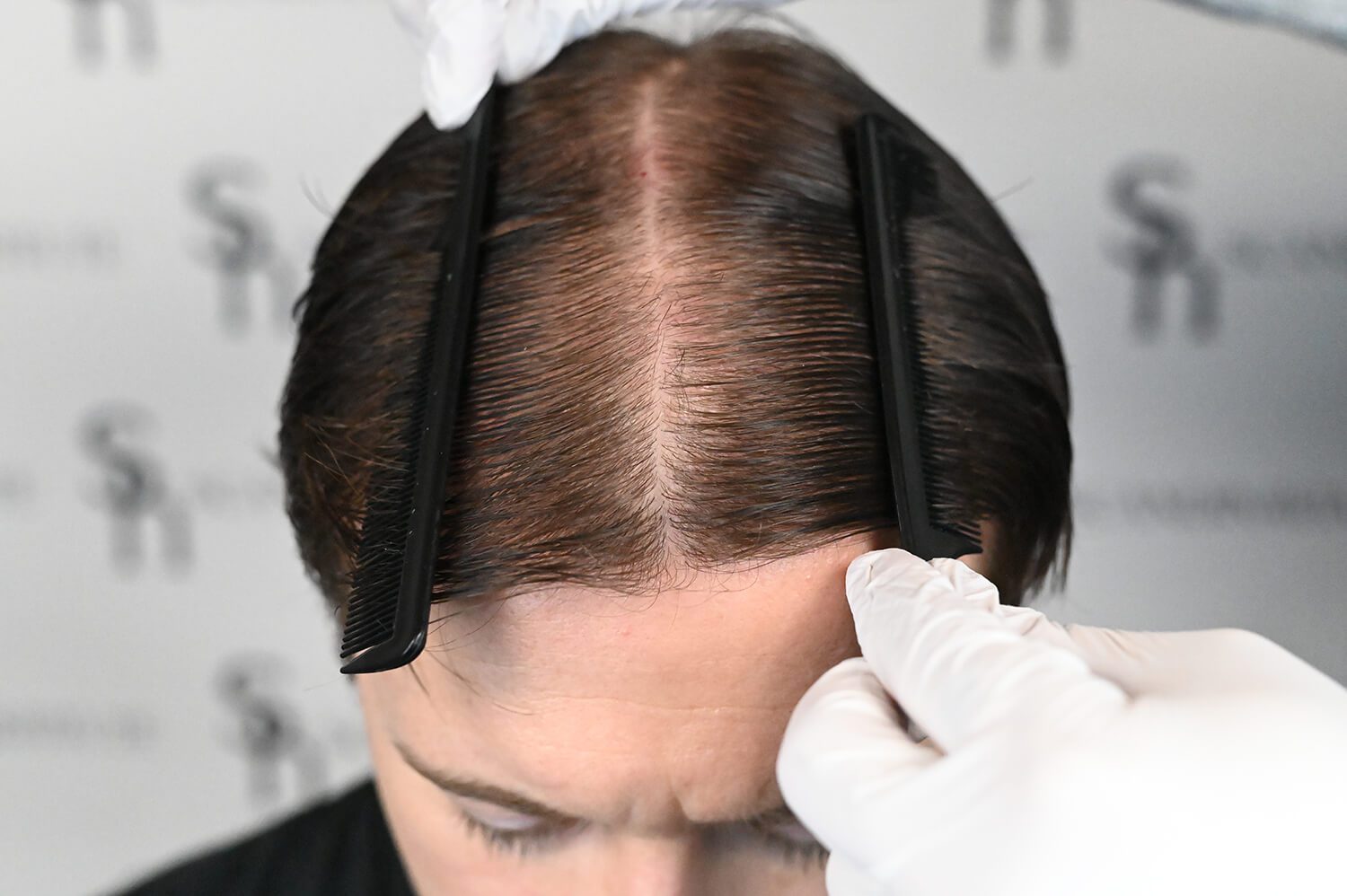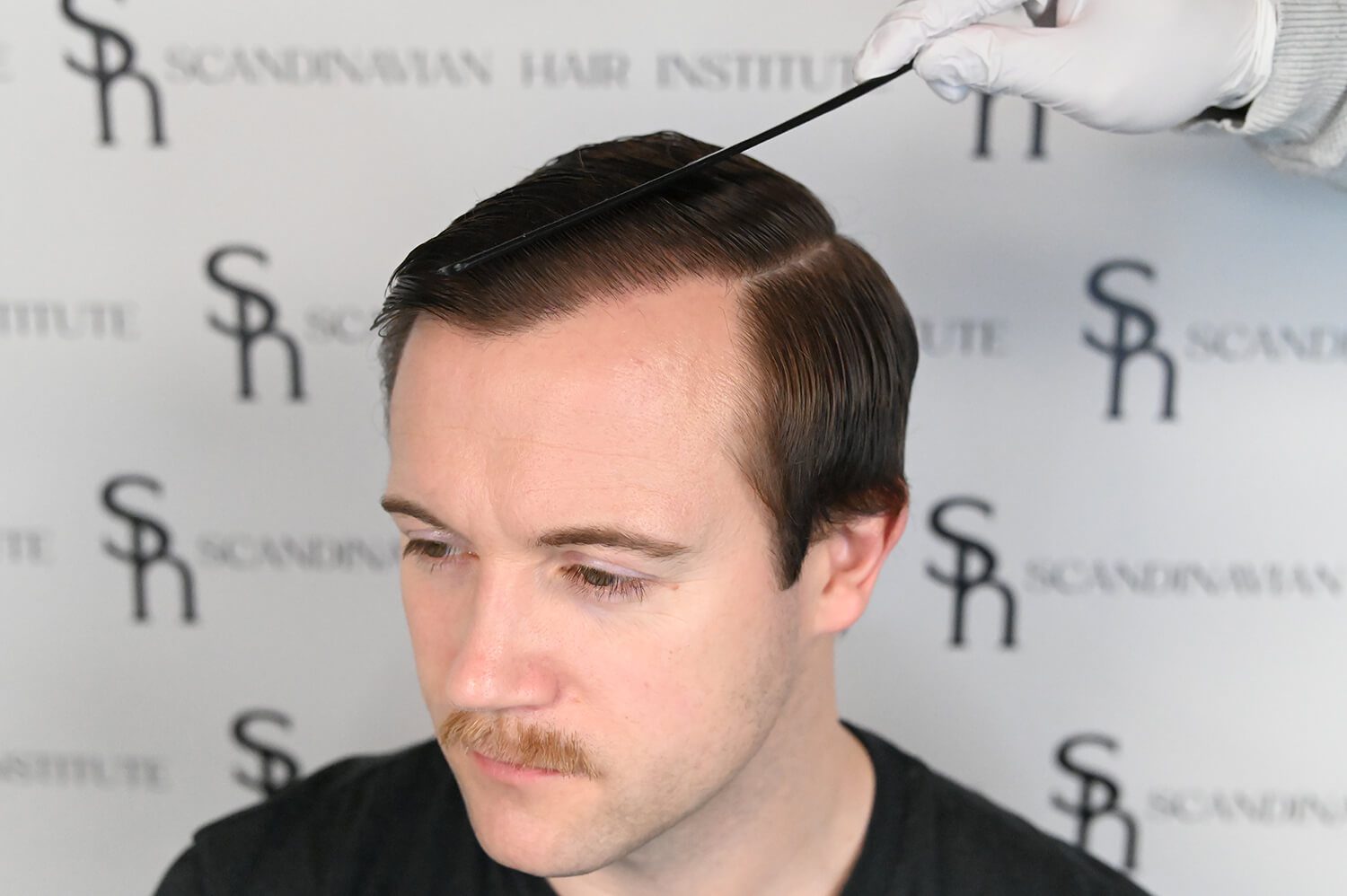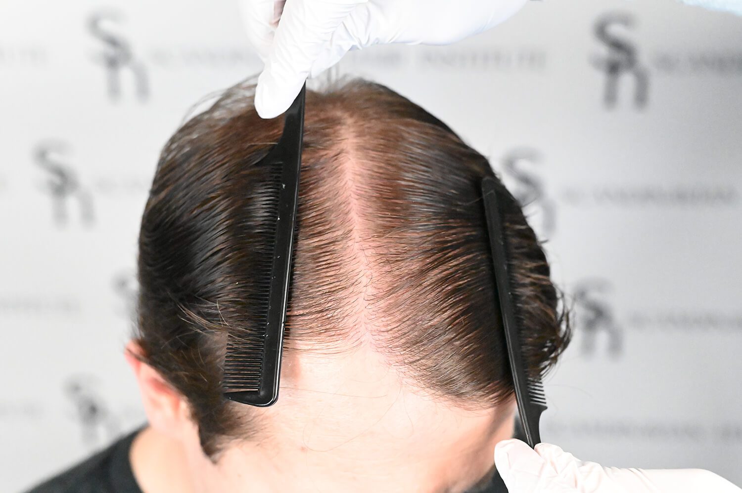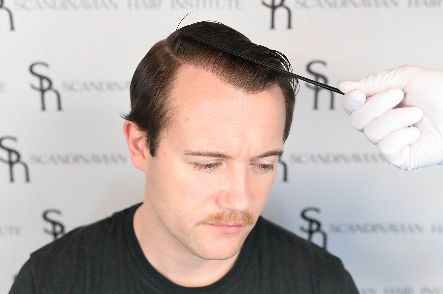 Our patient came to us to fill in his front, temples and crown. We used 2800 grafts on his first session. The second session is planned til next summer where we will do a touch up on the crown to seal the deal. It is important to educate patients and show what density to expect spreading this number of grafts over both the front and the crown and that you should expect doing touch ups to get complete denisty!