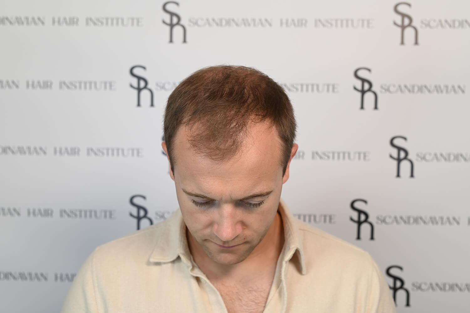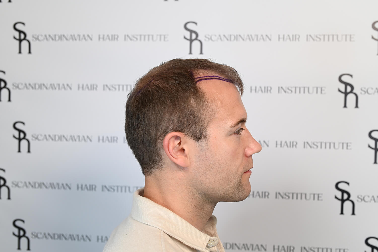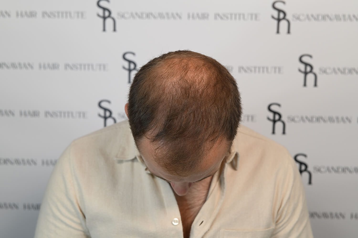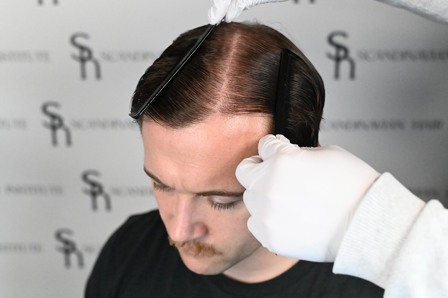 Our patient came to us to fill in his front, temples and crown. We used 2800 grafts on his first session. The second session is planned til next summer where we will do a touch up on the crown to seal the deal. It is important to educate patients and show what density to expect spreading this number of grafts over both the front and the crown and that you should expect doing touch ups to get complete denisty!