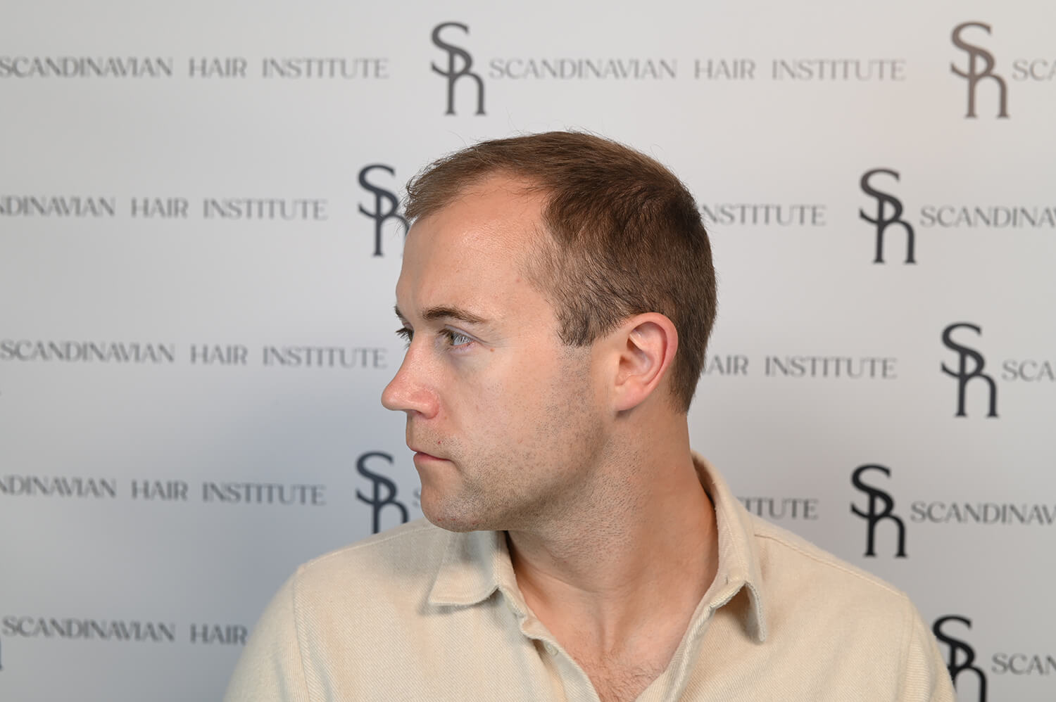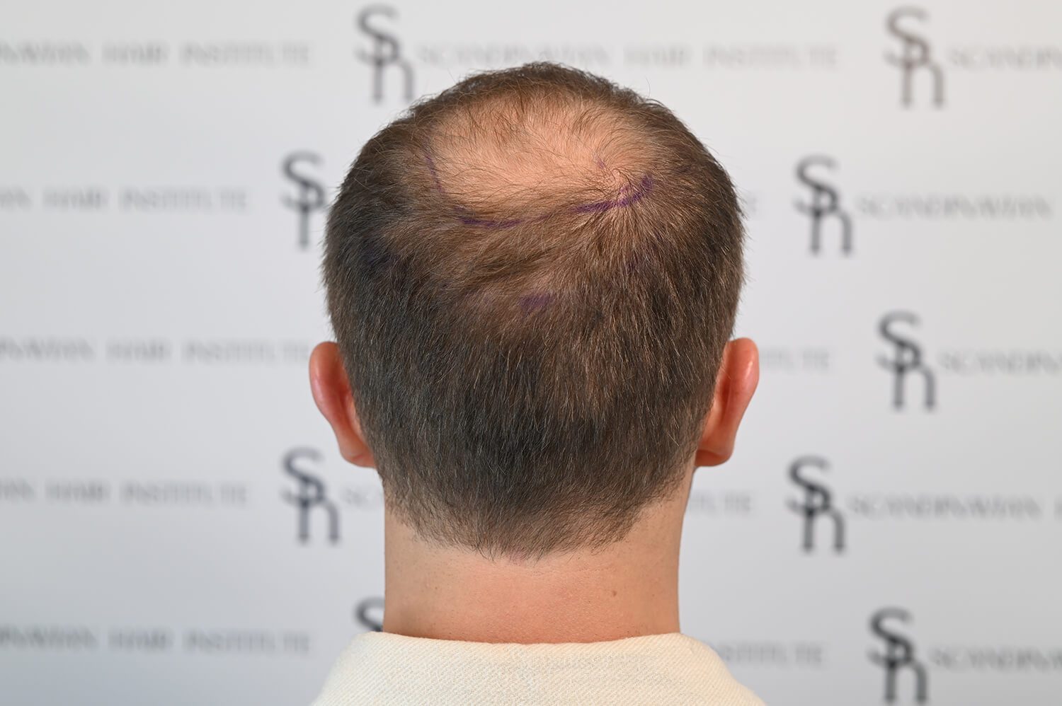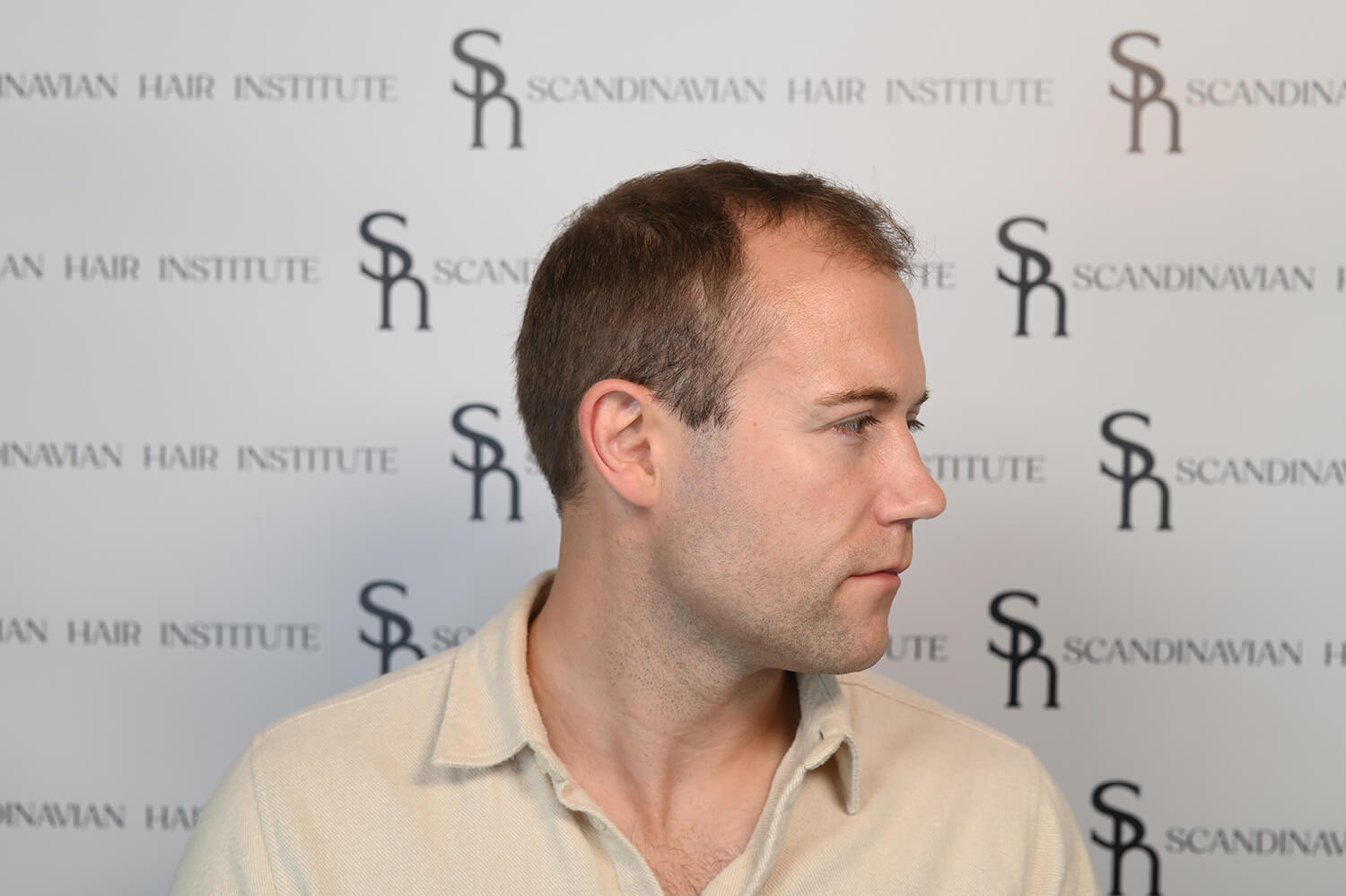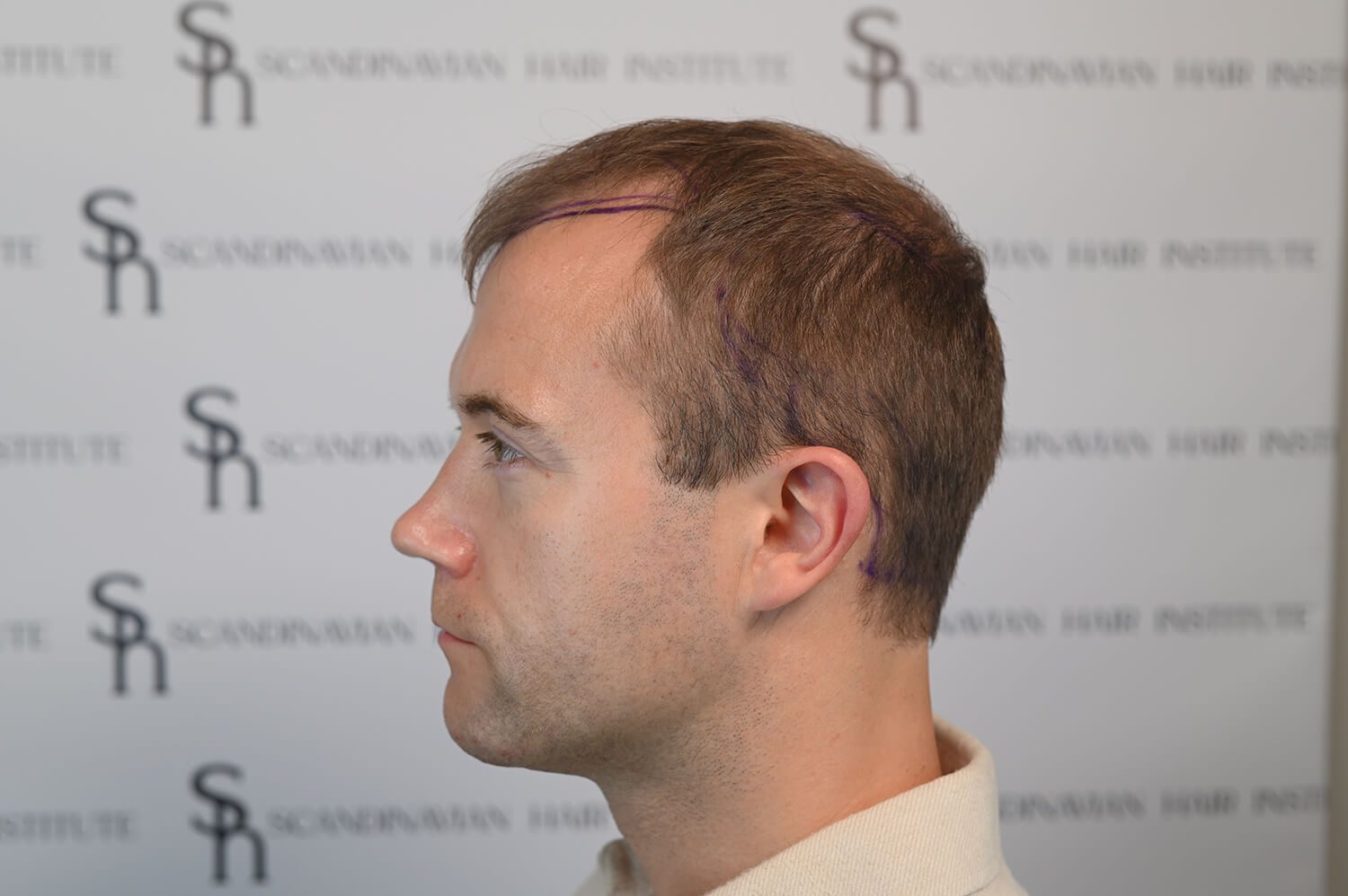 Our patient came to us to fill in his front, temples and crown. We used 2800 grafts on his first session. The second session is planned til next summer where we will do a touch up on the crown to seal the deal. It is important to educate patients and show what density to expect spreading this number of grafts over both the front and the crown and that you should expect doing touch ups to get complete denisty!