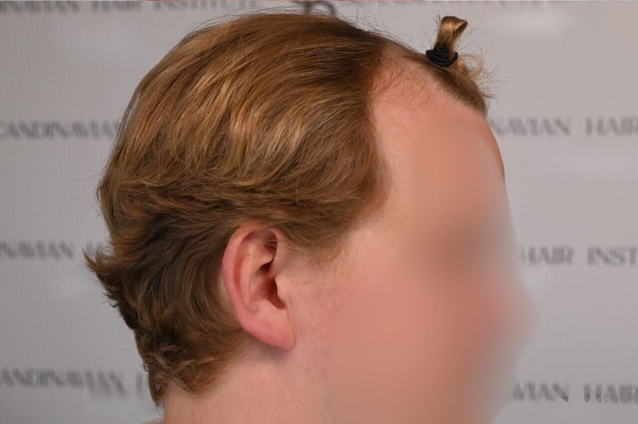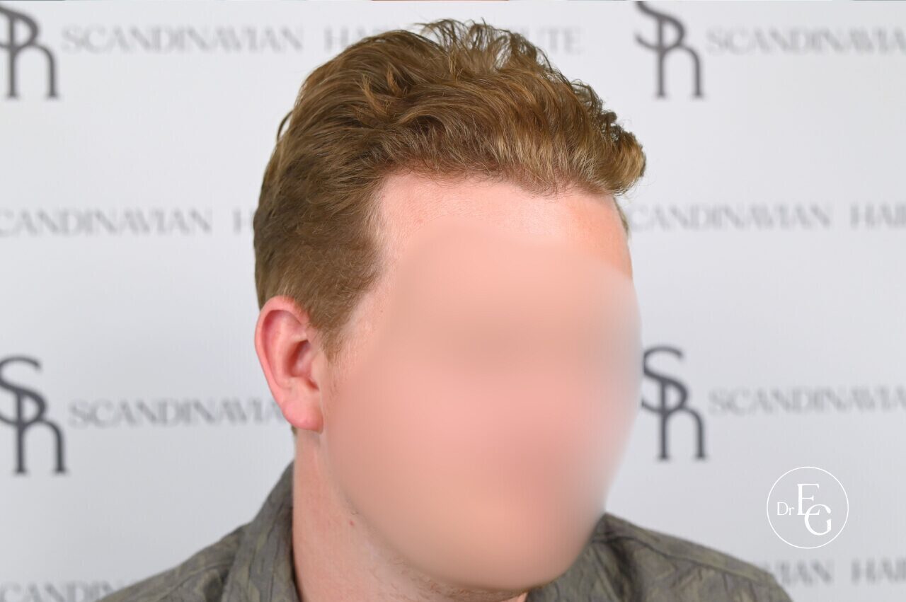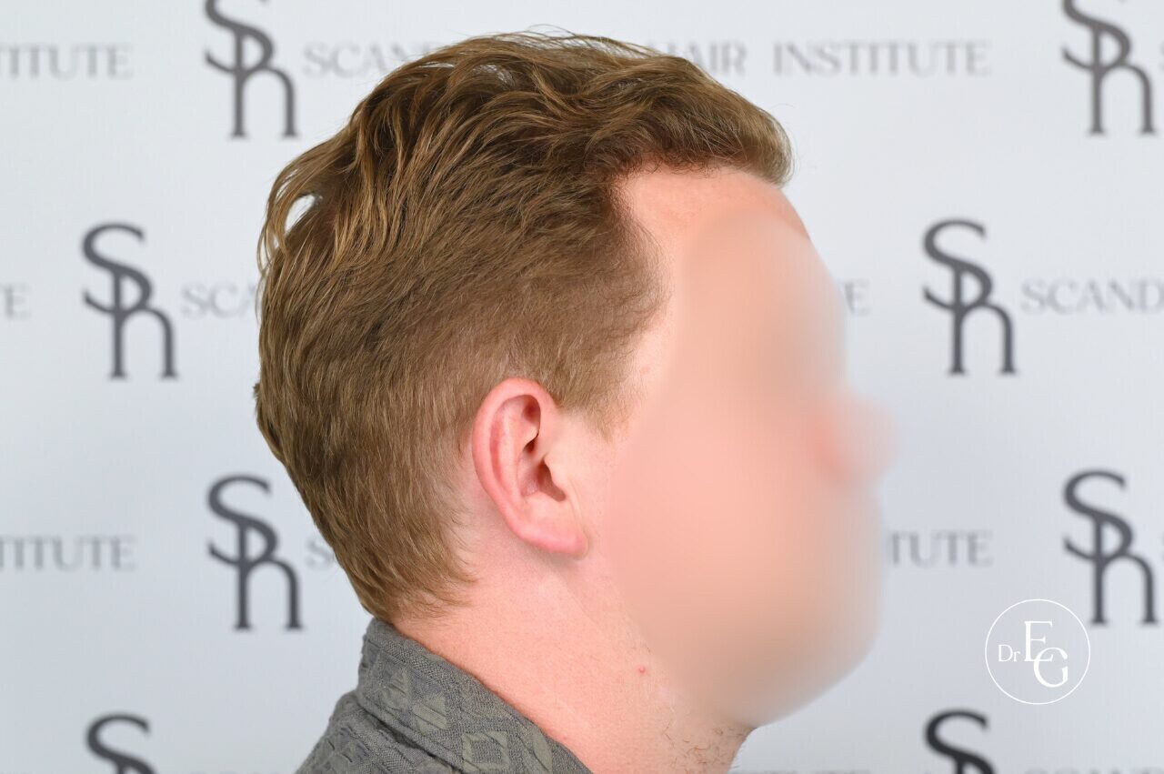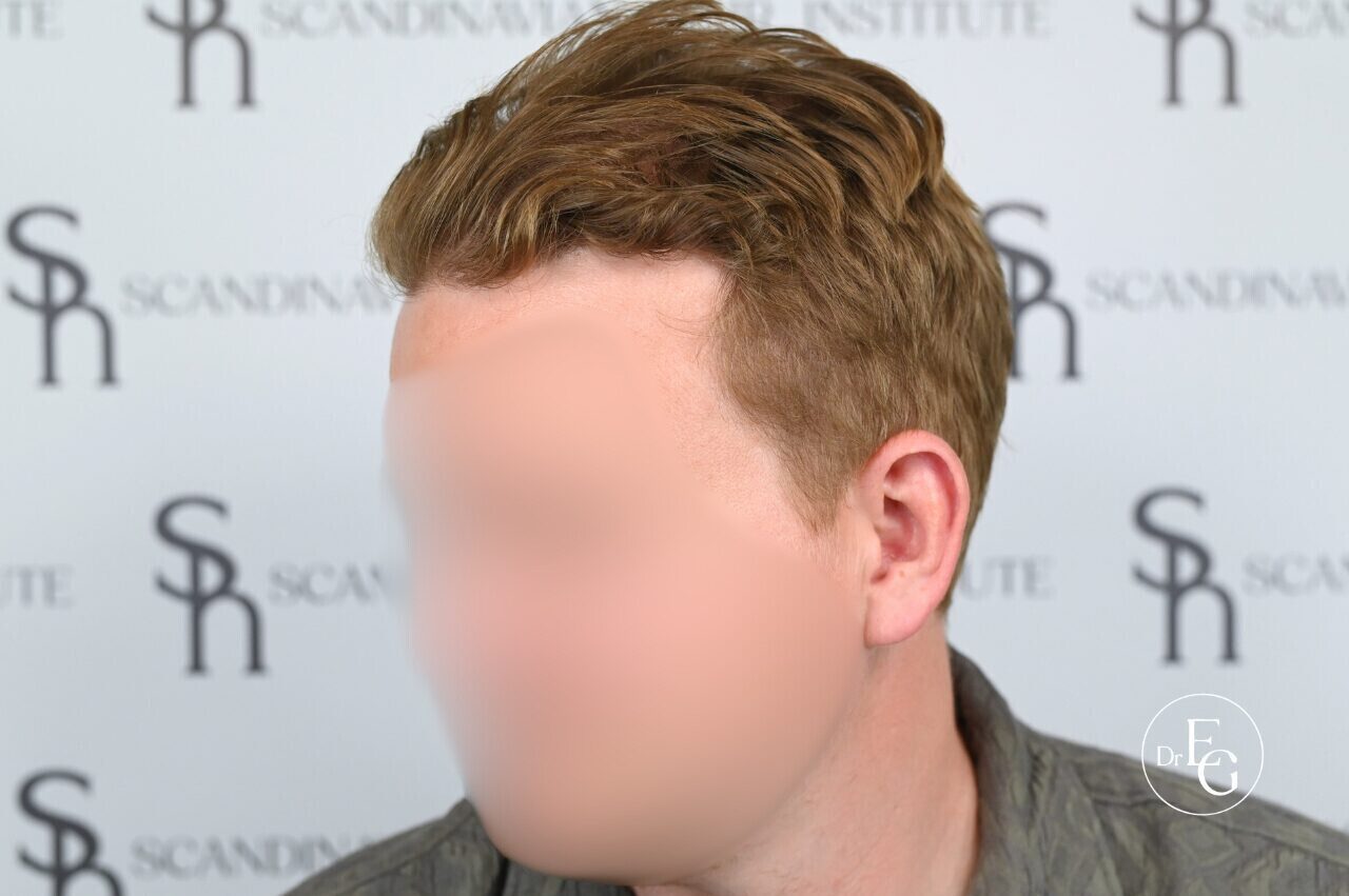 Temple restoration with 2,200 grafts on blonde-haired patient