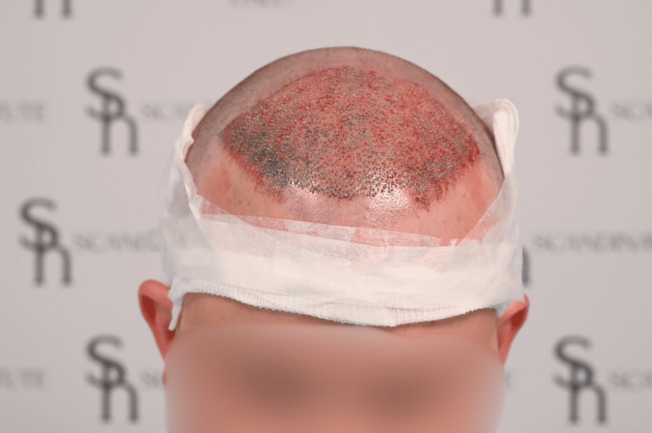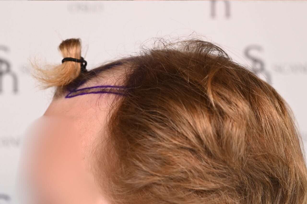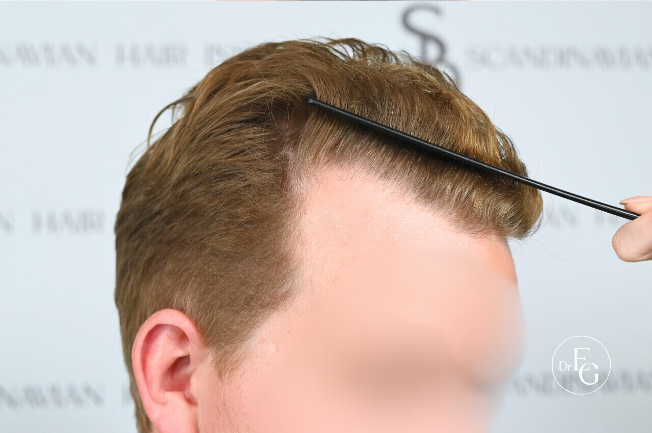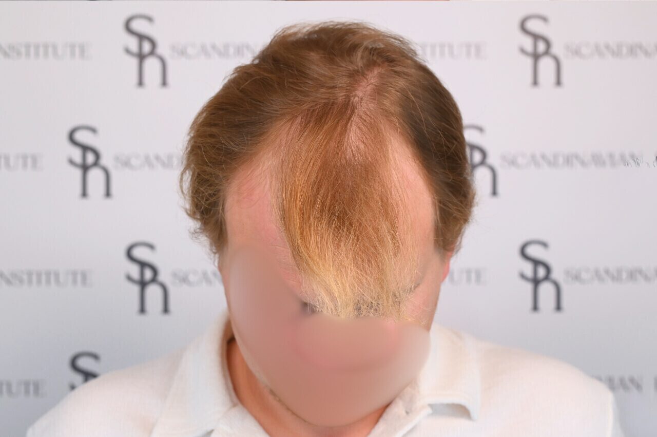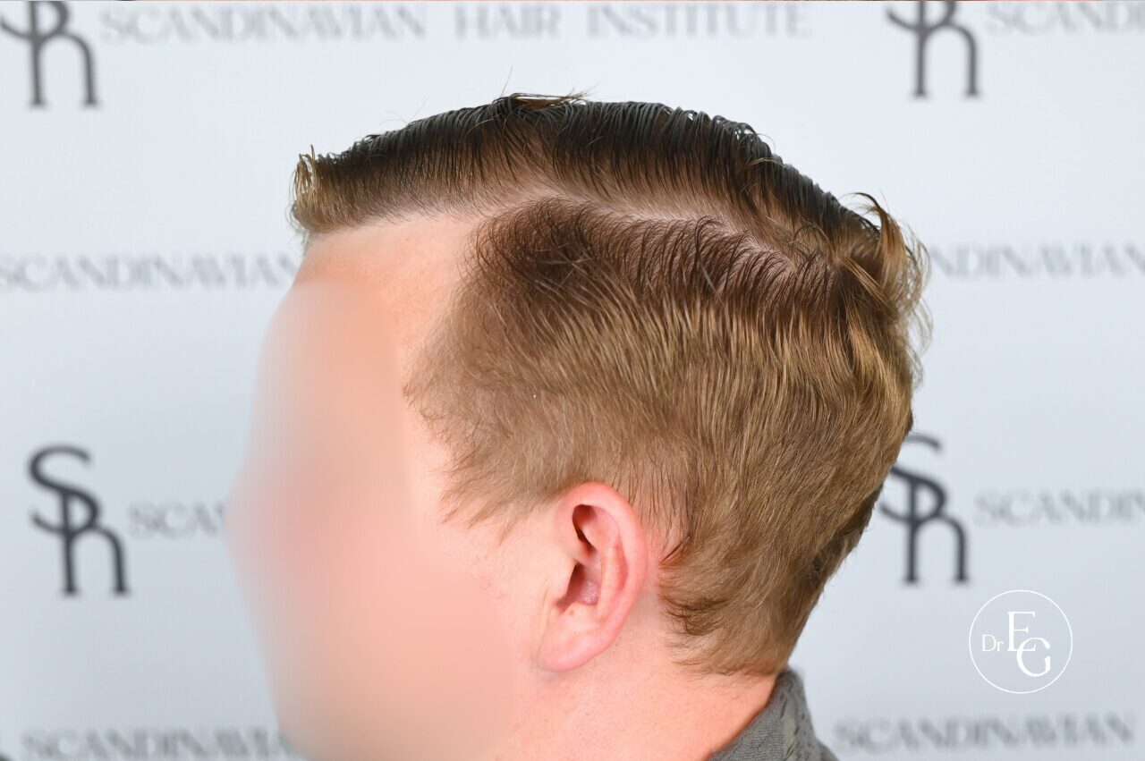 Temple restoration with 2,200 grafts on blonde-haired patient